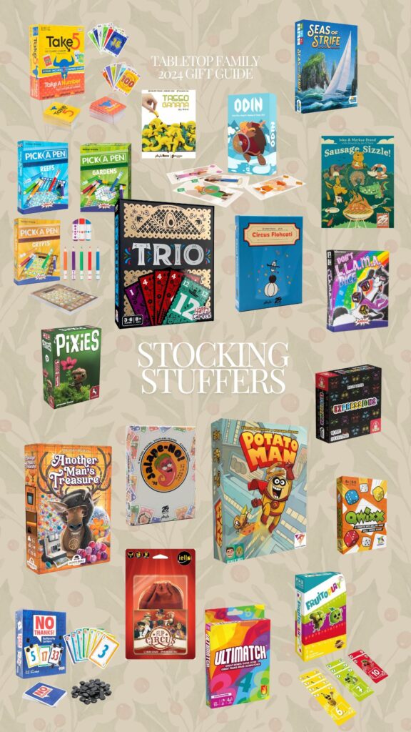 Sometimes the best games really do come in the smallest packages which is why the Stocking Stuffer gift guide is one of my favorites to put together each year! These are the types of games you can reach for when you need a quick game to teach to your family; games guaranteed to make you laugh; something you can grab after a long day to end on a high note.