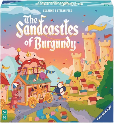The Sandcastles of Burgundy takes the incredibly popular strategy board game for adults and reimagines it for children. Created by the same designer, this Feld for Kids game packs hidden depth into an adorable theme. Players are looking for the decorations queen crab wants. During the game kids are presented with simple yet impactful choices, memory challenges, and a lovely step into the world of modern strategy gaming. Ages 5+