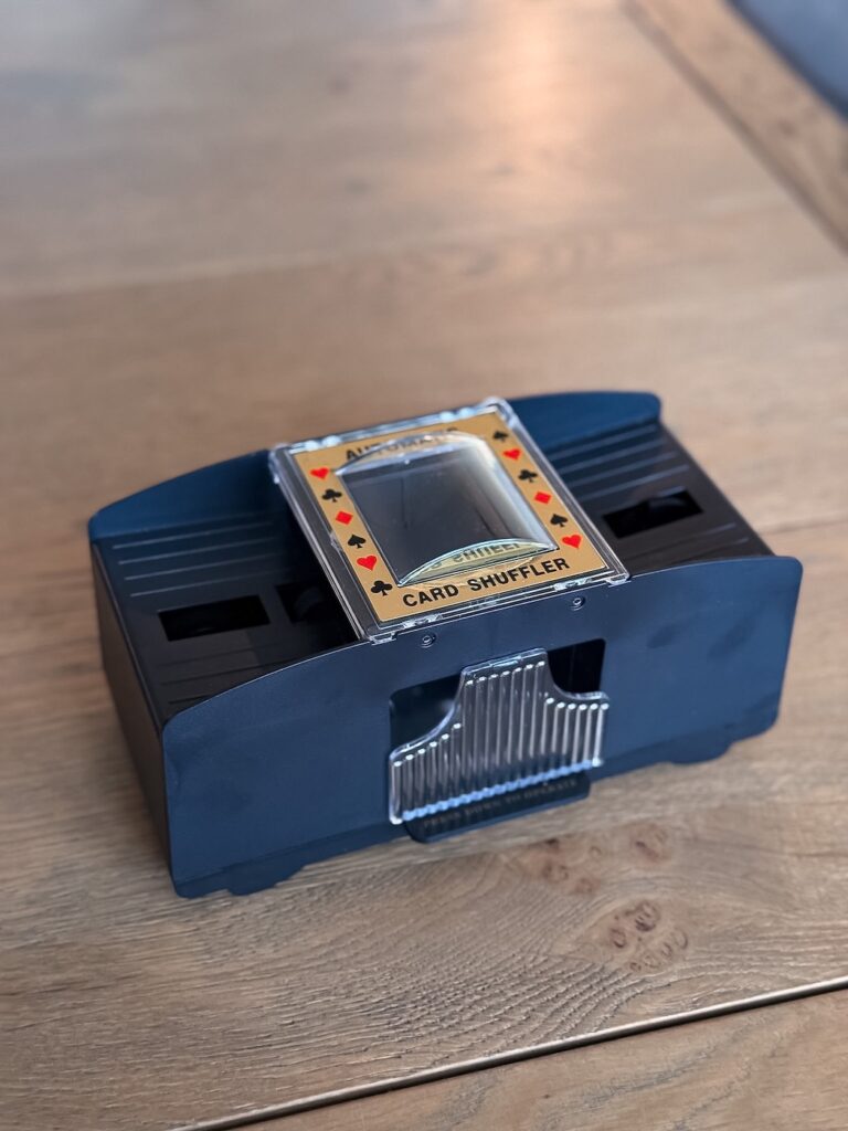 It is loud. The tray doesn’t attach properly and just sits there looking confused. It has no sensor to detect when shuffling is complete, so it will run forever unless you remember to hit the button again. The build quality feels like it was designed to last exactly one game night before loudly (because goodness is it loud) giving up. We have nothing nice to say about it and we’re a positive family.
