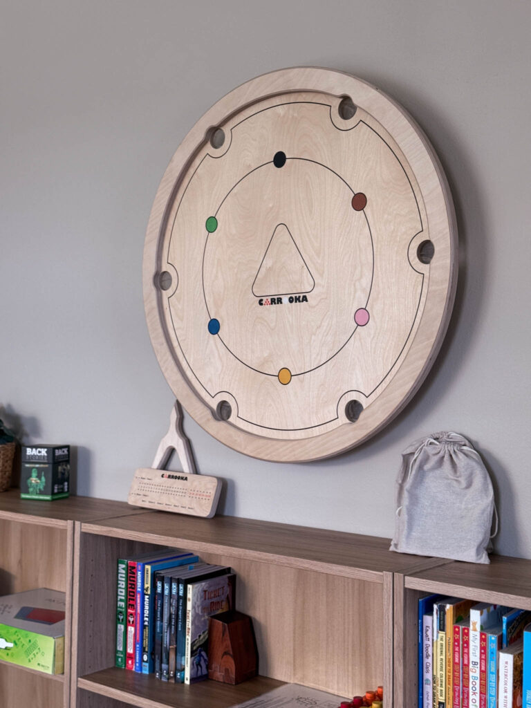 Okay, not exactly, but ever since we got our Crokinole board we’ve been obsessed not only with the game but also how fun it is having it displayed on our wall. When we discoverd Carrooka, we knew we had to bring one home to add to our walls!