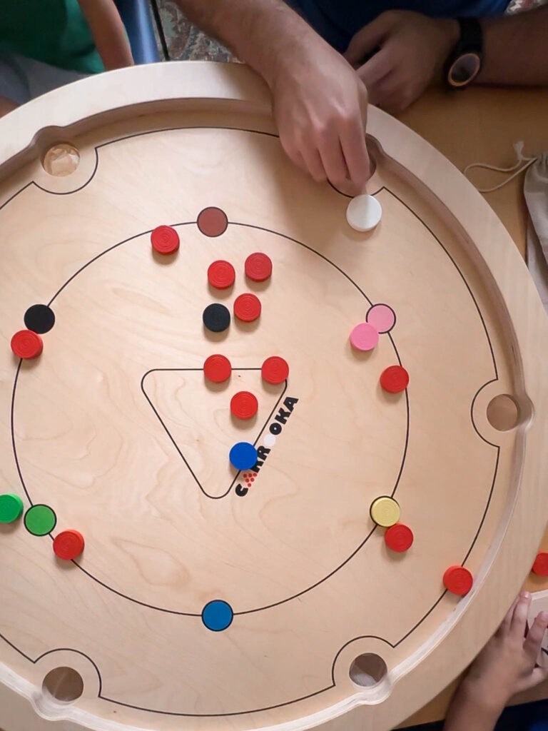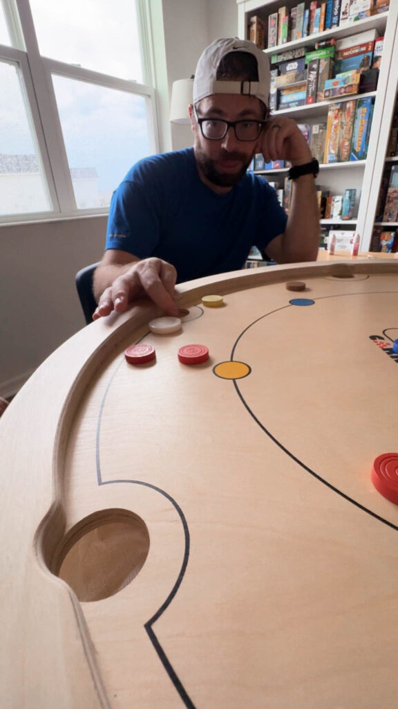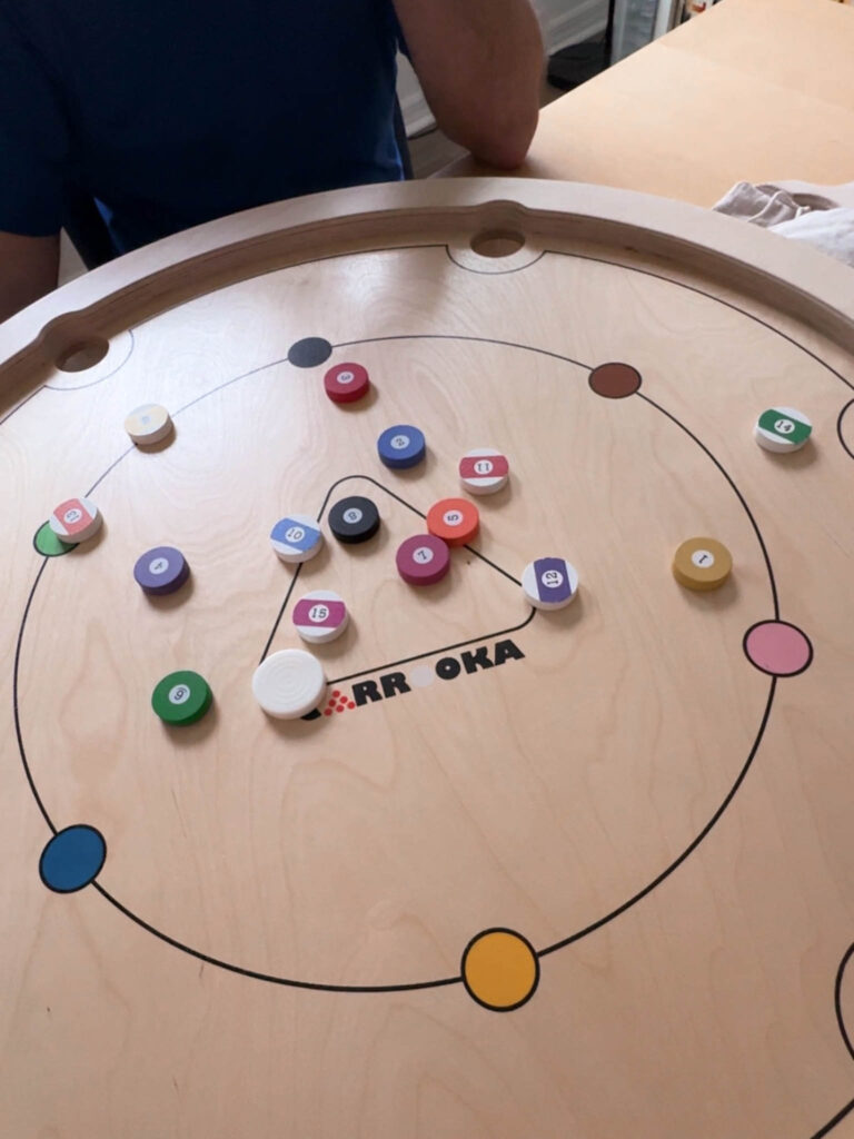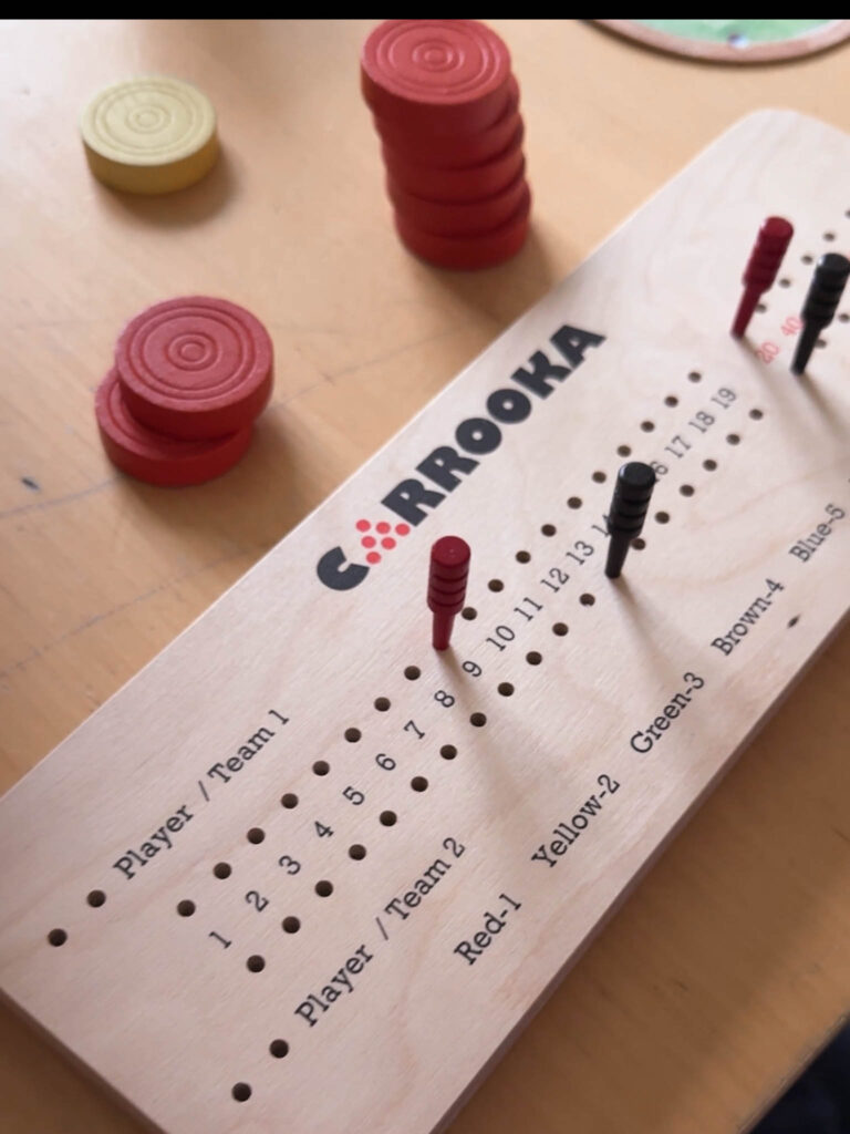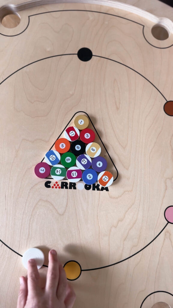After years of playing Crokinole, I was surprised at how much more skill it felt like it took to play on the Carrooka board! Getting the discs into the pockets without scratching requires a fair amount of geometry and finesse. But that just makes every sunk shot that much sweeter!