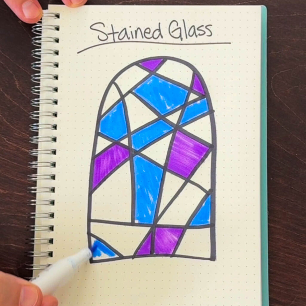 Stained Glass is a two-player area-control game played on a hand-drawn window. Start by drawing a stained-glass window shape and dividing it into many smaller pane sections with lines. Each player chooses a color. Players take turns coloring in one uncolored section. The section you choose may not share a side with any section colored by your opponent (corner-touching is allowed), but it may touch sections of your own color. The goal is to place your color in ways that block your opponentโs future options while preserving your own. Play continues until a player cannot legally color any remaining section; that player concedes, and the opponent wins.