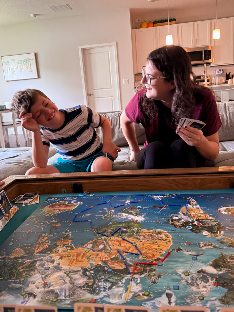 This game turns geography into an adventure. Players travel across a beautifully illustrated world map, planning routes between major cities and landmarks, which naturally builds global awareness and map familiarity. As kids decide how to connect destinations, they practice spatial reasoning, route planning, and understanding how places relate to one another across continents. Itโs a wonderful choice for families who want a game that strengthens real-world geography knowledge while still feeling like a true strategy game.